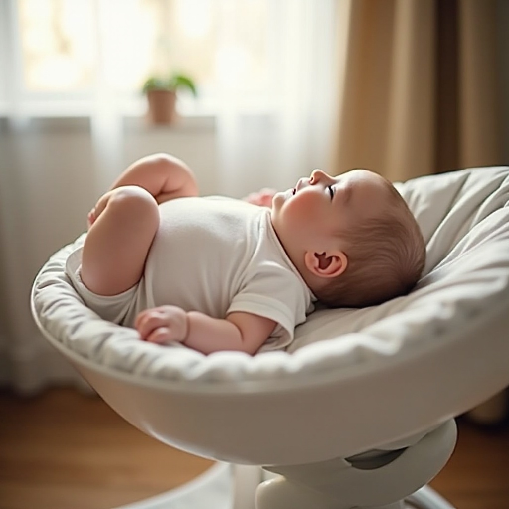 تأكد من أن الطفل مربوط بأمان ولا يترك دون مراقبة. حدد الاستخدام لفترات تهدئة أو راحة قصيرة، وانتقل إلى بيئات نوم أكثر أمانًا لفترات أطول.